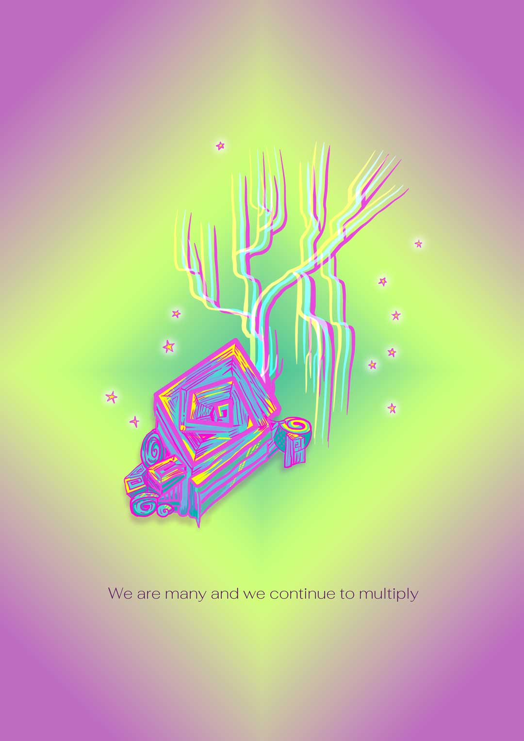 2026, Cyborgrrrls launch a techno-feminist message into cyberspace. Away from this binary male dominant narrative, their envoy includes womxn and other species and it resists the faux-precision of neatly packaged data. The message is multiple, amorphous, it forms and reforms. Referencing pre-Colombian Hispanic iconography such as Códice Boturini, this message can be redrawn in ASCII and hidden in our web projects; it can be spraypainted on our vehicles and boats; tattoed on our skin; it can be broadcast on our local radio stations or whispered in our sisters' ears.